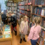 Poté si žáci prohlédli knihovnu a mohli si listovat v některých knížkách pro děti. Byli překvapeni, kolik zajímavých příběhů a pohádek tam na ně čeká.