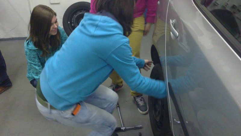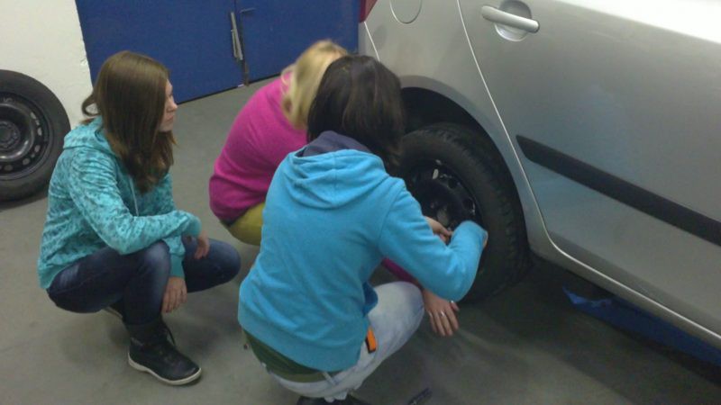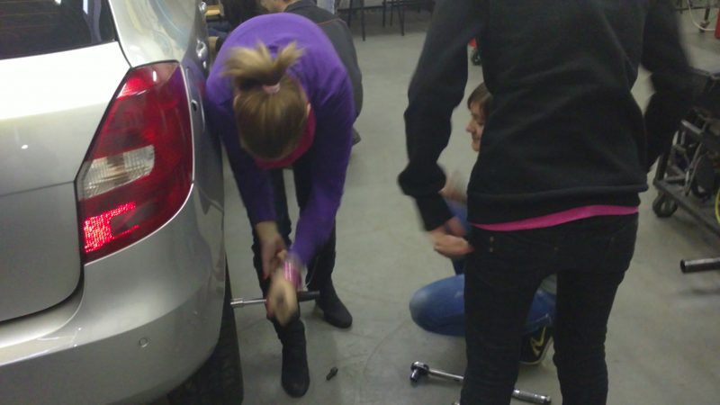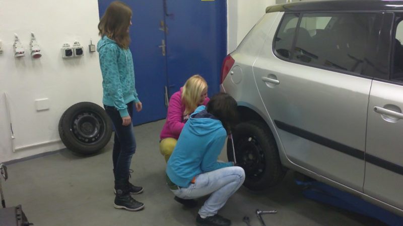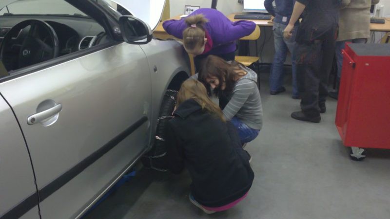Foto žáků, kteří si přímo vyzkoušeli to co se učí studenti Automobilní školy v Holicích.