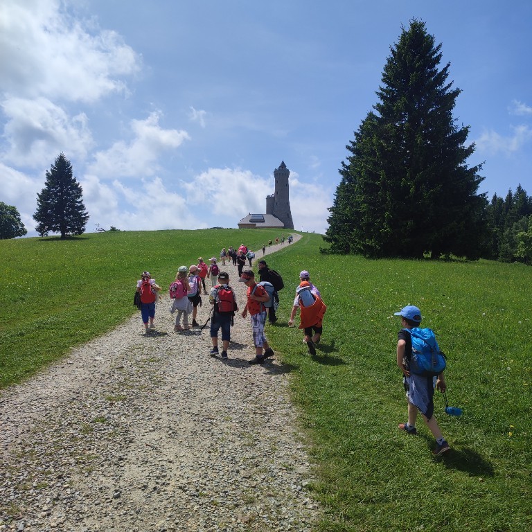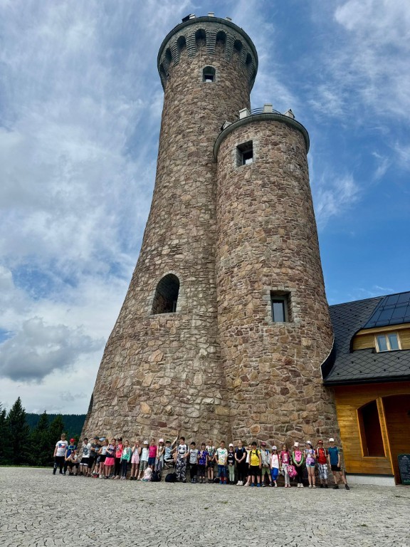 Obě druhé třídy se 4. 6. společně vypravily na výlet na Dalimilovu rozhlednu. Po jízdě autobusem nám vyhládlo, tak jsme si udělali piknik u parkoviště pod sjezdovkou, kterou jsme se chystali vyšlápnout. Dala nám trochu zabrat, ale všichni jsme to zvládli! Za odměnu jsme si na turistické chatě Paprsek dali nanuk, pohráli jsme si na dětském hřišti a pokochali jsme se krásným výhledem na protější kopec, který jsme se chystali pokořit, protože na něm byl cíl našeho výletu - Dalimilova rozhledna. Výstup na Dalimilovu rozhlednu od Paprsku byl snadnější než výstup na Paprsek. Výhled z rozhledny byl okouzlující. Počasí nám přálo, takže jsme viděli i nejvyšší vrchol Hrubého a Nízkého Jeseníku - horu Praděd. Výlet doporučujeme všem milovníkům českých hor.