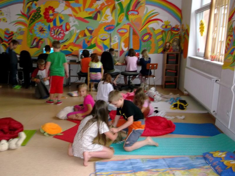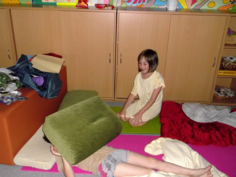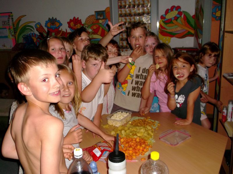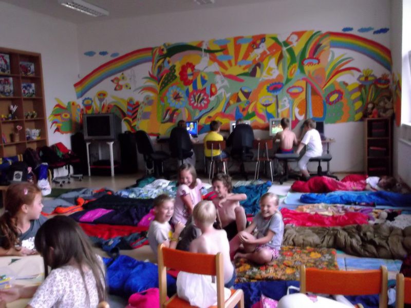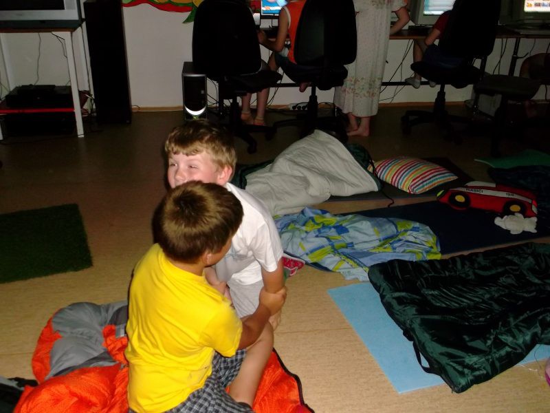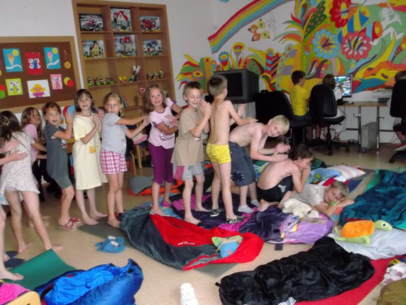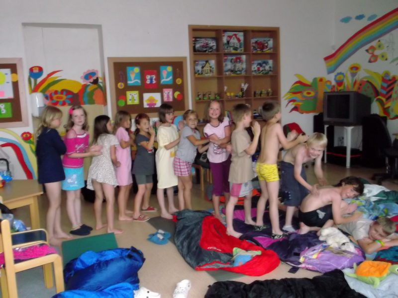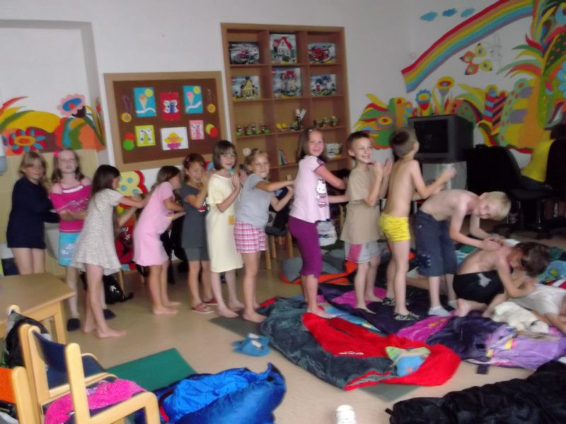 Závěr školního roku jsme si zpříjemnili nocováním ve ŠD. Venku jsme hráli na pašeráky,společně jsme povečeřeli dobroty z domova a potom nastala ta pravá legrace.
